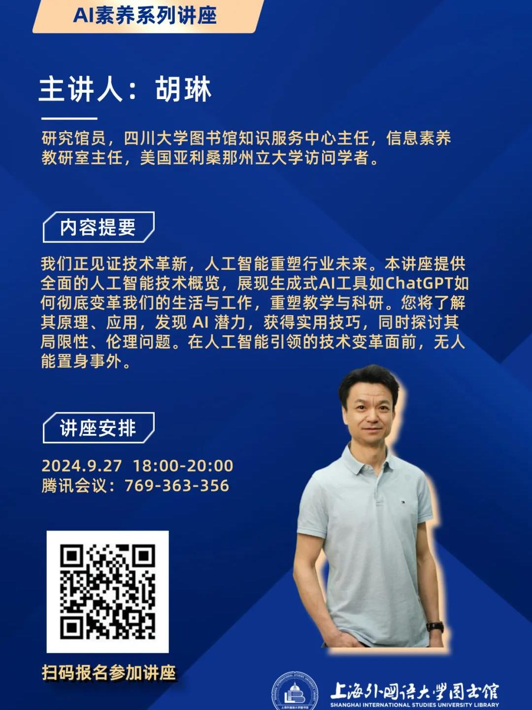 我们正在见证一场技术革新的壮丽篇章,人工智能以其突破性的创新能力,重塑着各行各业的未来。本讲座旨在为您提供一个全面的人工智能技术概览,特别是以ChatGPT为代表的生成式AI工具,展现其如何彻底变革我们的生活与工作,重塑教学与科研。您将了解到ChatGPT的基本原理,并通过案例分析的方式,探讨生成式AI工具在内容创作、数据分析、学术研究等多个领域的实际应用,发现AI对提升个人和团队效能的巨大潜力,获得将AI有效融入日常生活和工作的实用技巧。同时,讲座将探讨AI技术的局限性,以及如何巧妙构建提示词以引导AI生成更精确、更有深度的回答。讲座还将讨论AI伦理问题,包括数据隐私和学术道德等重要议题。