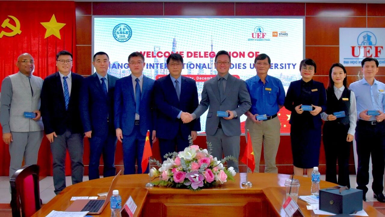 Nhằm tiếp tục thúc đẩy hợp tác và giao lưu quốc tế, đẩy mạnh đào tạo nhân tài ngành pháp luật đối ngoại đa ngôn ngữ và ngàng nghiên cứu khu vực-quốc gia, từ ngày mồng 1 đến mồng 5 tháng 12, đoàn công tác Học viện Luật học và Học viện Nghiên cứu châu Á và châu Phi, Đại học Ngoại ngữ Thượng Hải (SISU) đã có chuyến thăm và làm việc tại Đại học Khoa học Xã hội và Nhân văn-Đại học Quốc gia Hà Nội, Đại học Kinh tế - Tài chính Thành phố Hồ Chí Minh. Đoàn cũng đã đến thăm các công ty luật và doanh nghiệp uy tín tại Việt Nam. Đoàn do Giáo sư Trương Hải Bân (Zhang Haibin), Viện trưởng Viện Nghiên cứu Sau đại học kiêm Viện trưởng Học viện Luật học SISU dẫn đầu, với các thành viên gồm Phùng Siêu (Feng Chao), Chủ nhiệm Bộ môn Tiếng Việt thuộc Học viện Nghiên cứu châu Á và châu Phi, Triệu Thủ Chính (Zhang Shouzheng), Trợ lý Văn phòng làm việc Học viện Luật học, và Trần Khải (Chen Kai), Thư ký Đối ngoại Học viện Luật học.